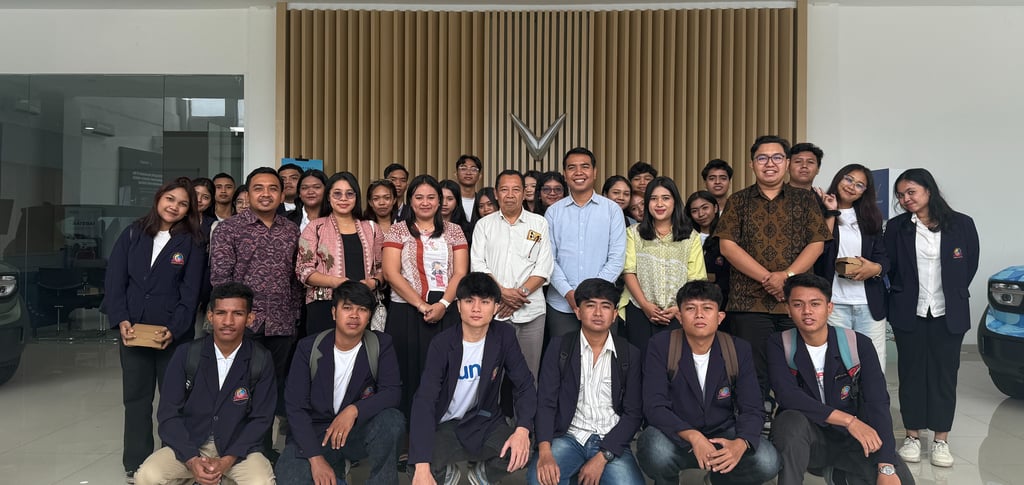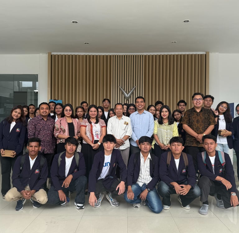 Terima kasih kepada tim Vinfast Bali yang sudah menyambut kami dengan sangat baik dan berbagi insight berharga mengenai operasional industri otomotif modern. Kegiatan PBL seperti ini benar-benar memberikan gambaran nyata antara teori di kampus dengan praktik di industri yang sedang berkembang pesat.